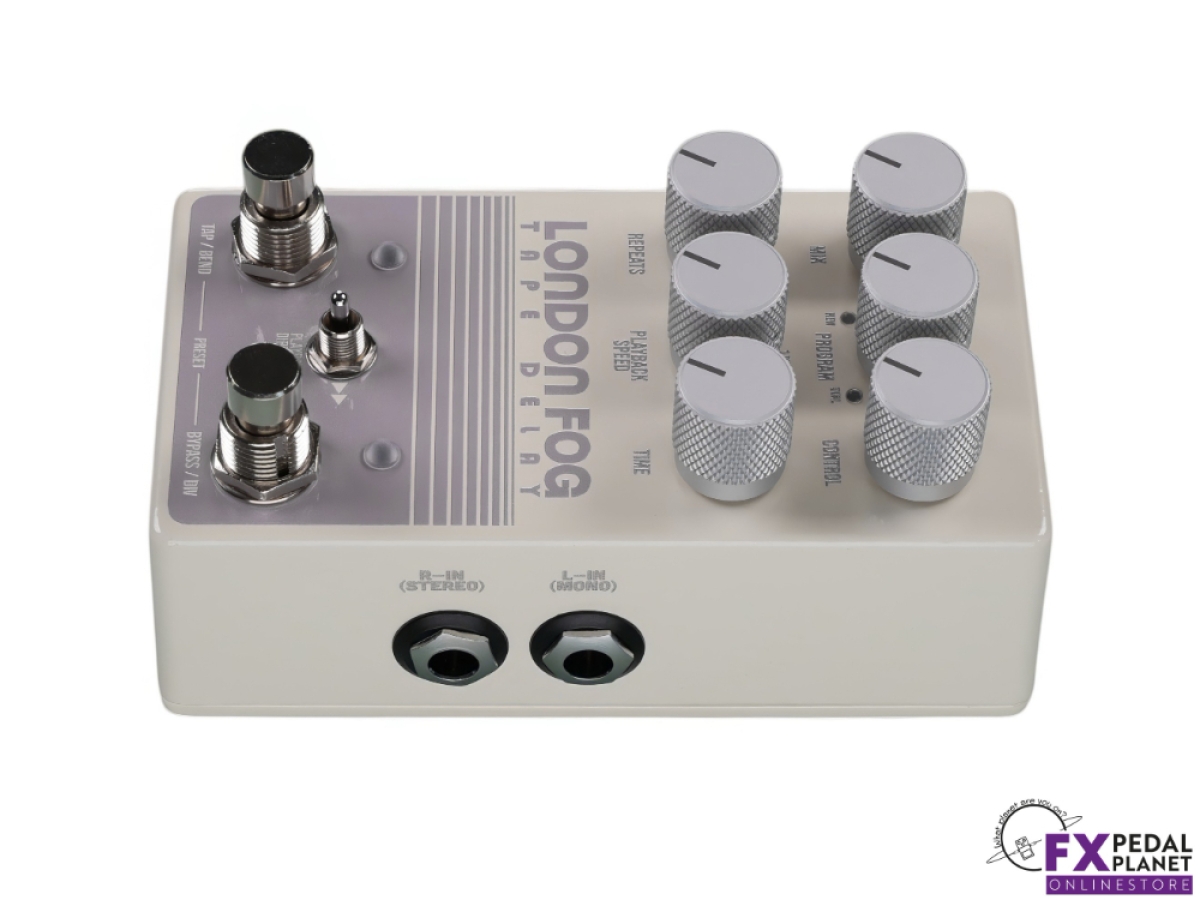 Playing through the London Fog is both tactile and inspiring. The playback direction switch gives you total freedom, forward, reverse, or both at once, letting you conjure lush, swirling textures. Hold the tap footswitch for Bend Mode to glide the playback speed between two settings, creating pitch shifting swells that feel like the rise of steam in your cup.
