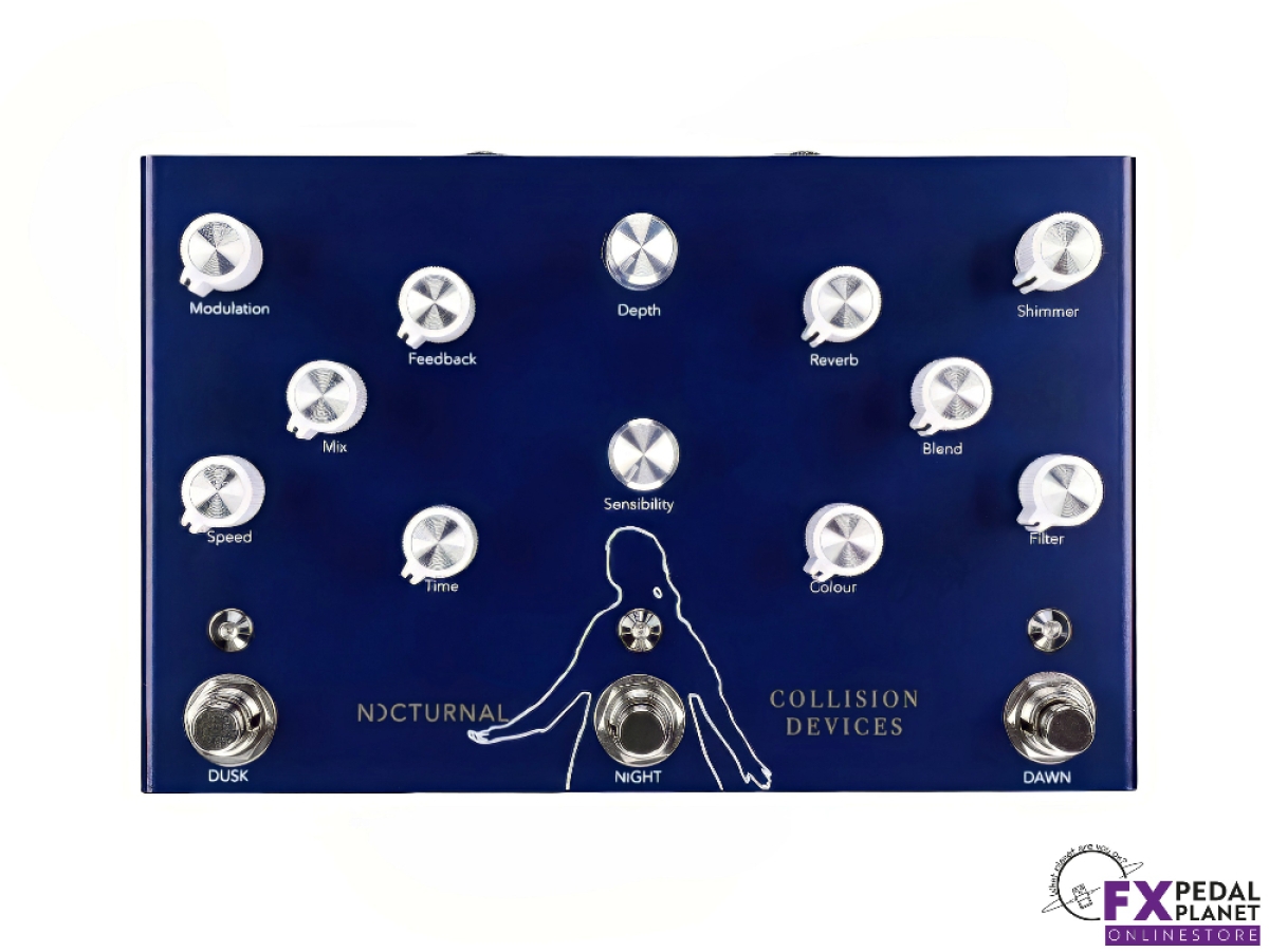 In summary, the Nocturnal by Collision Devices offers a unique blend of delay, tremolo, and reverb effects in a beautifully designed, hand built package. Whether you're looking to create subtle atmospheres or vast, sweeping soundscapes, the Collision Devices Nocturnal delivers with precision and style.