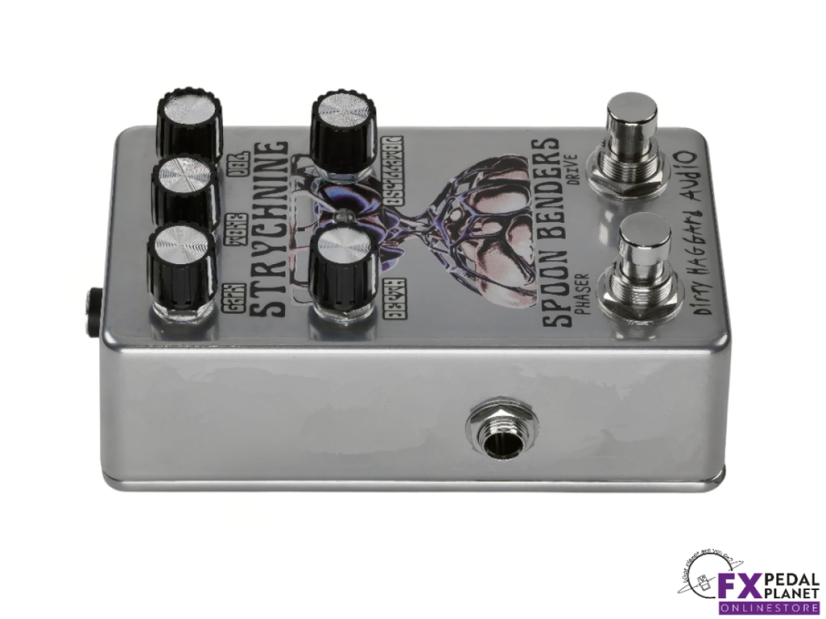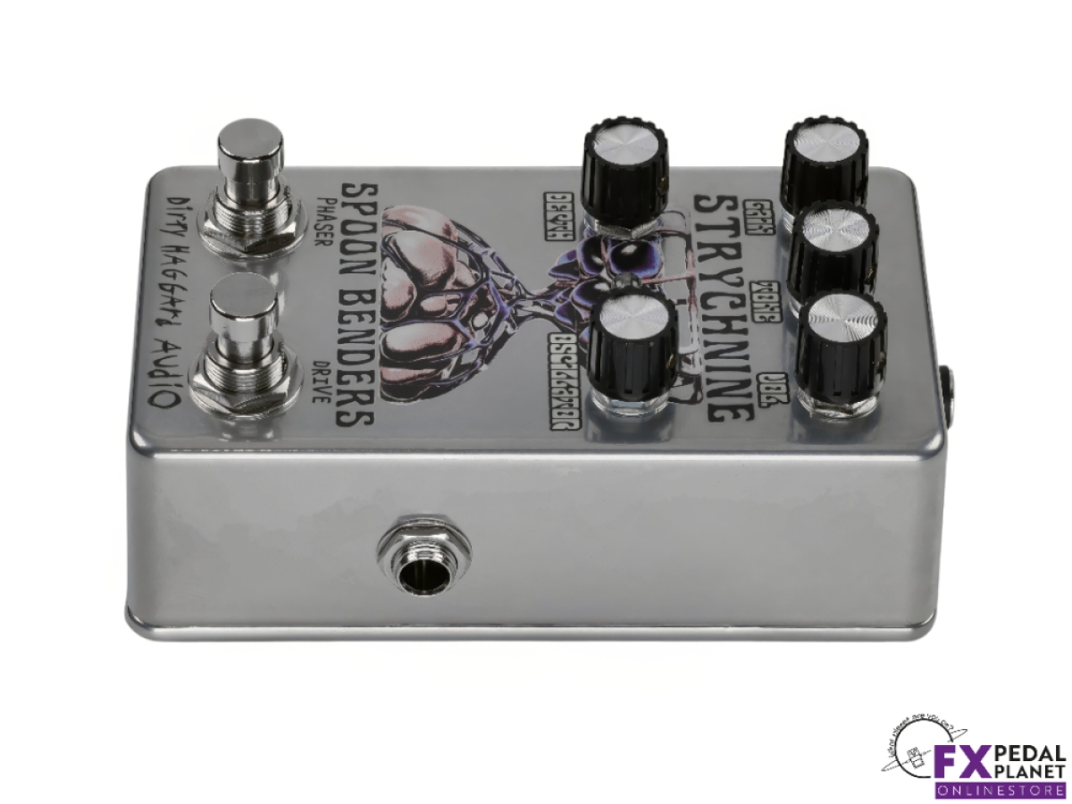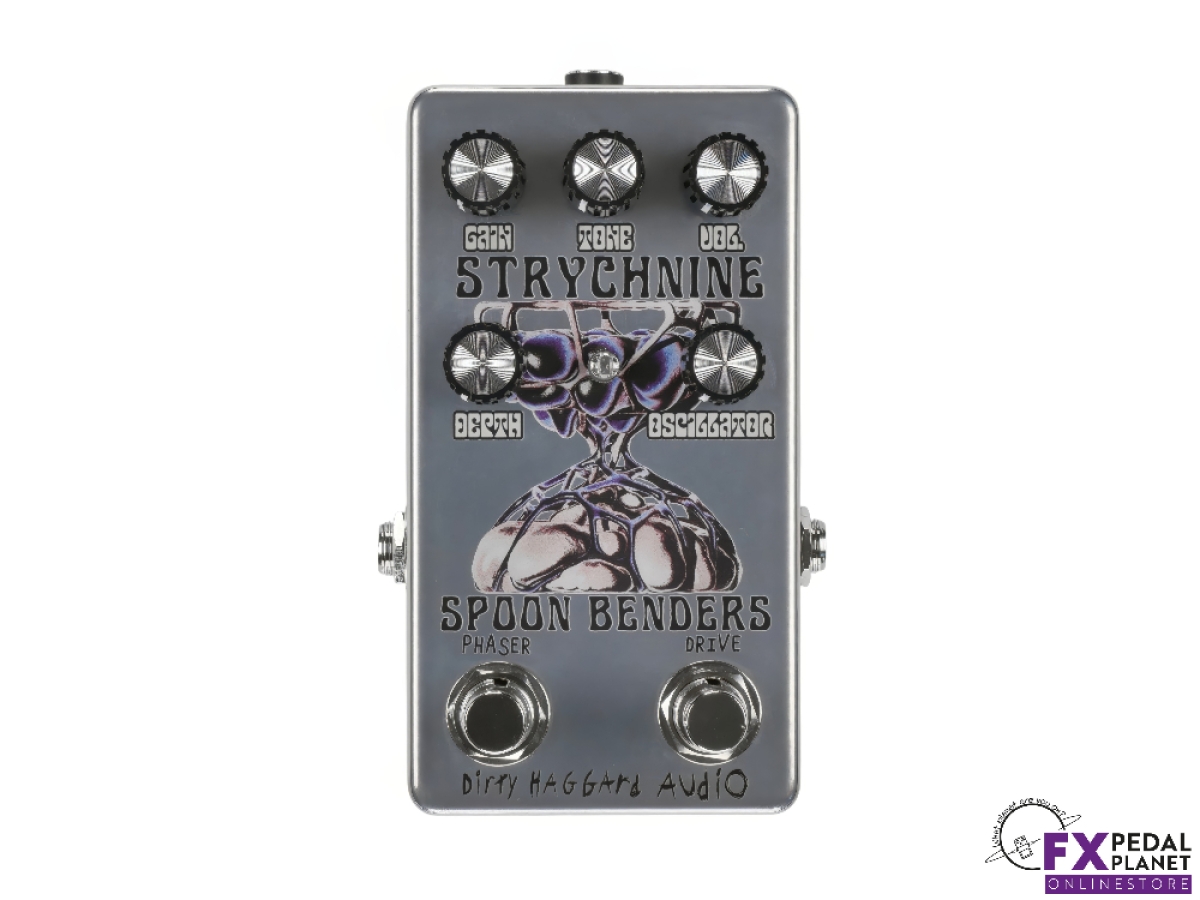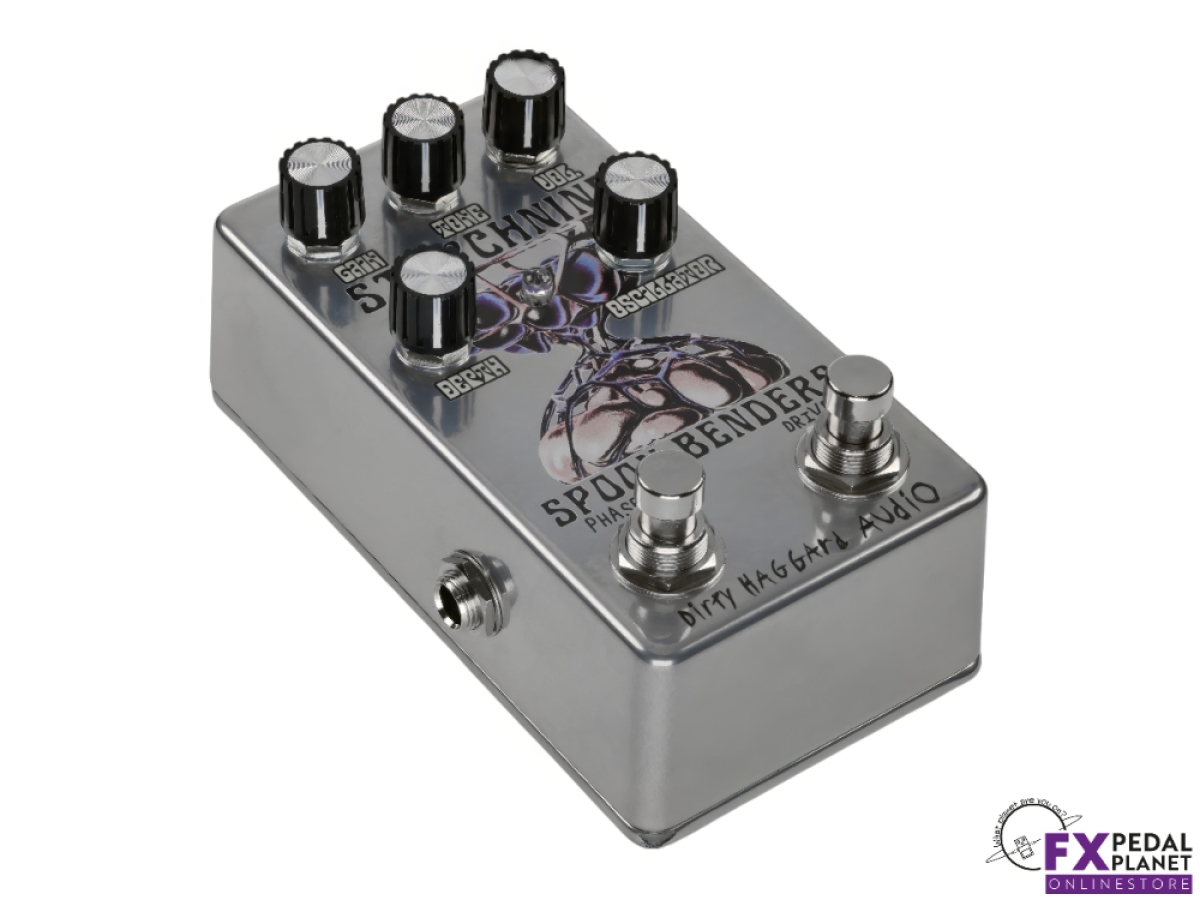 The Dirty Haggard Strychnine pedal is a two in one effects unit born from a collaboration with Portland psych rock outfit Spoon Benders. It combines an overdrive circuit and a playful phaser into a single compact stompbox, allowing guitarists and bassists to flex between gritty drive and swirling modulation, or dial both in together. Designed with versatility in mind, it integrates smoothly into pedalboards with dedicated outputs and buffered circuits on each side.