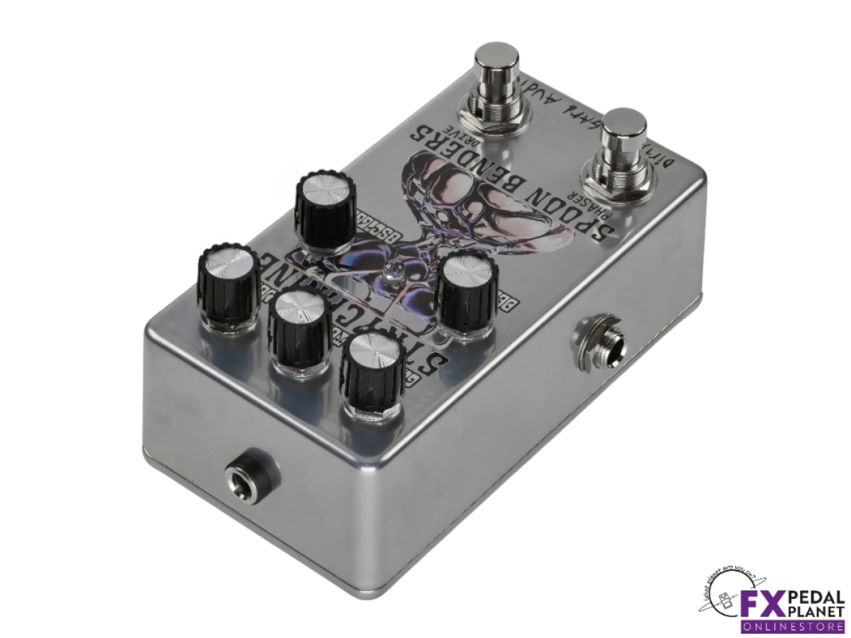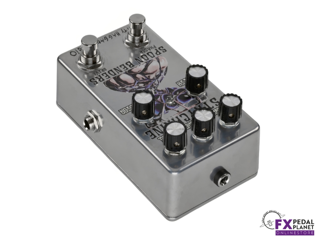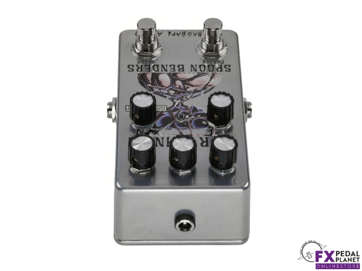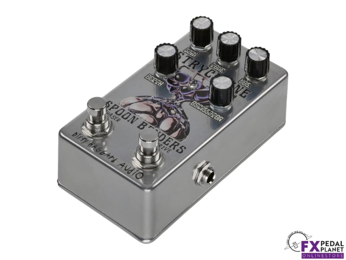 The Dirty Haggard Strychnine pedal is a two in one effects unit born from a collaboration with Portland psych rock outfit Spoon Benders. It combines an overdrive circuit and a playful phaser into a single compact stompbox, allowing guitarists and bassists to flex between gritty drive and swirling modulation, or dial both in together. Designed with versatility in mind, it integrates smoothly into pedalboards with dedicated outputs and buffered circuits on each side.