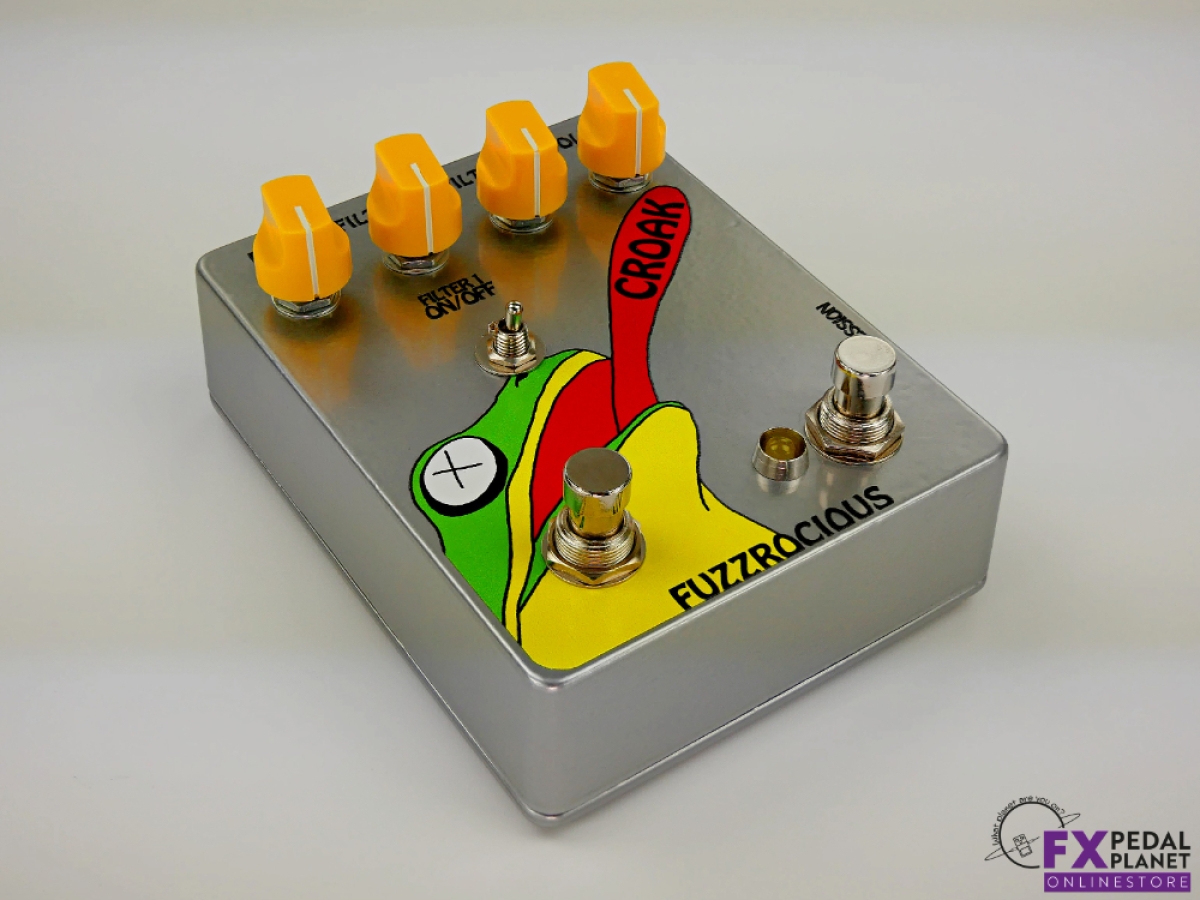 Tones from the Fuzzrocious Pedals Croak are huge! Cranking the Fuzzrocious Pedals Croak and it will drip from your speakers like a demonic molten lava bullfrog. Fuzzing, croaking, gulping, buzzing, splattering, filtering and turning your guitar or bass into something like you have ever heard before. Tones are totally unique and highly useable.