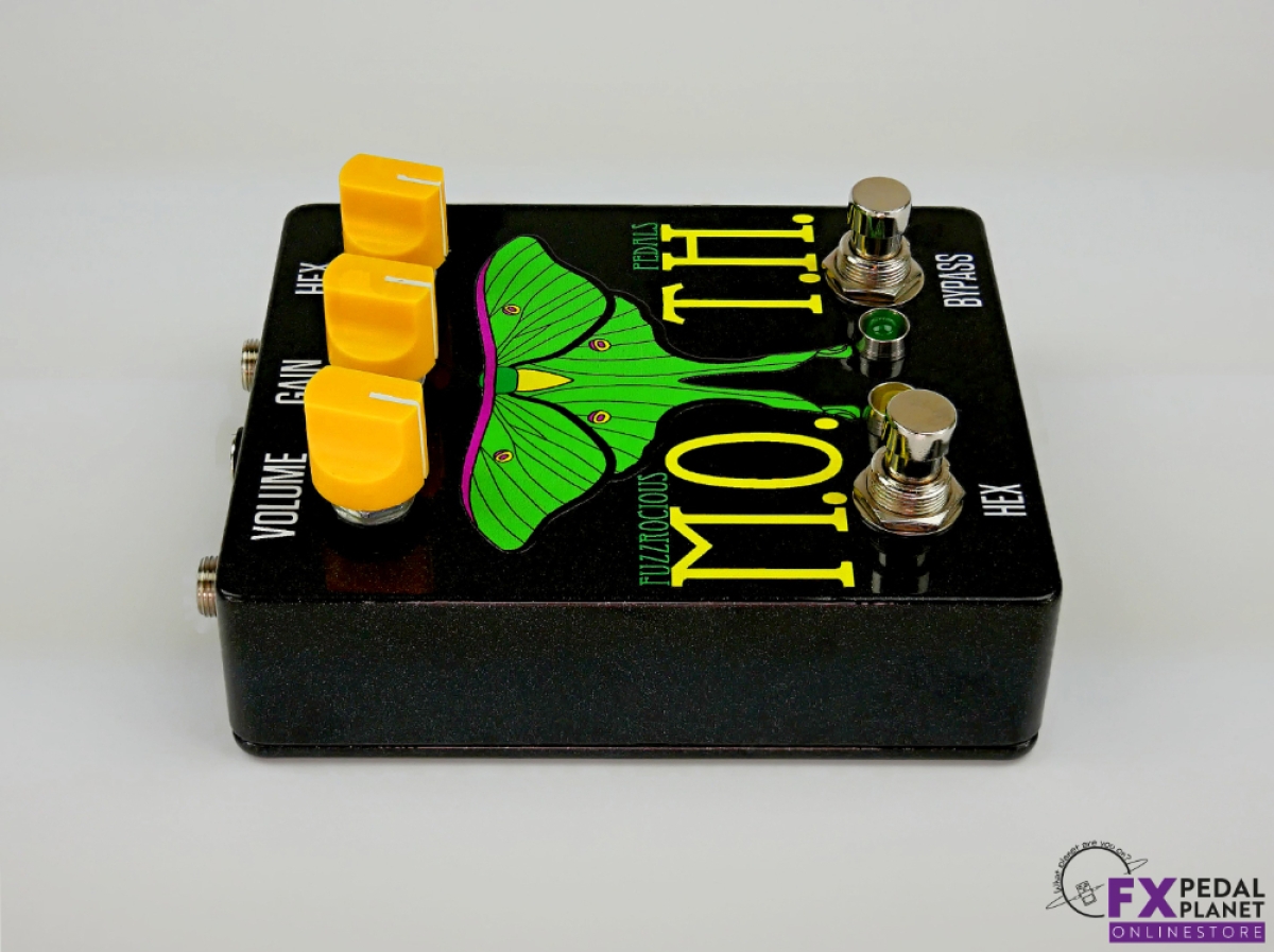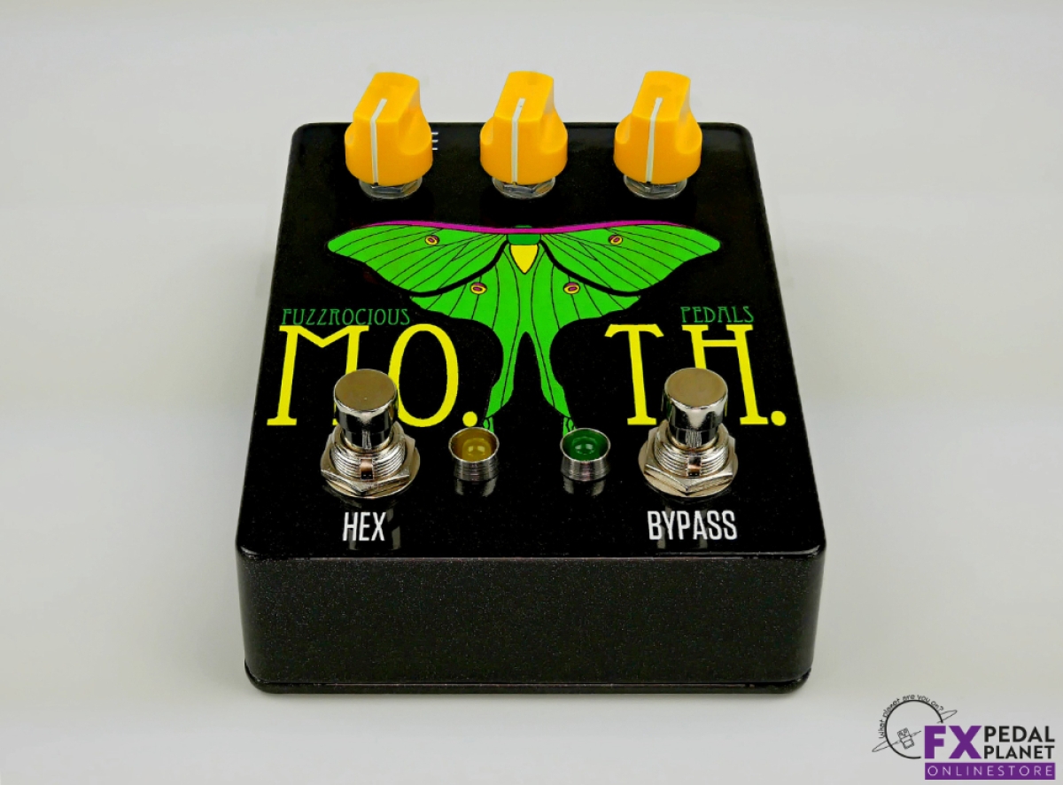 The Fuzzrocious Pedals M.O.T.H. is a fantastic effects pedal that will add creativity to your playing, sound and texture. Turn your guitar, bass or other instruments into a psychedelic space moth with the Fuzzrocious Pedals M.O.T.H.