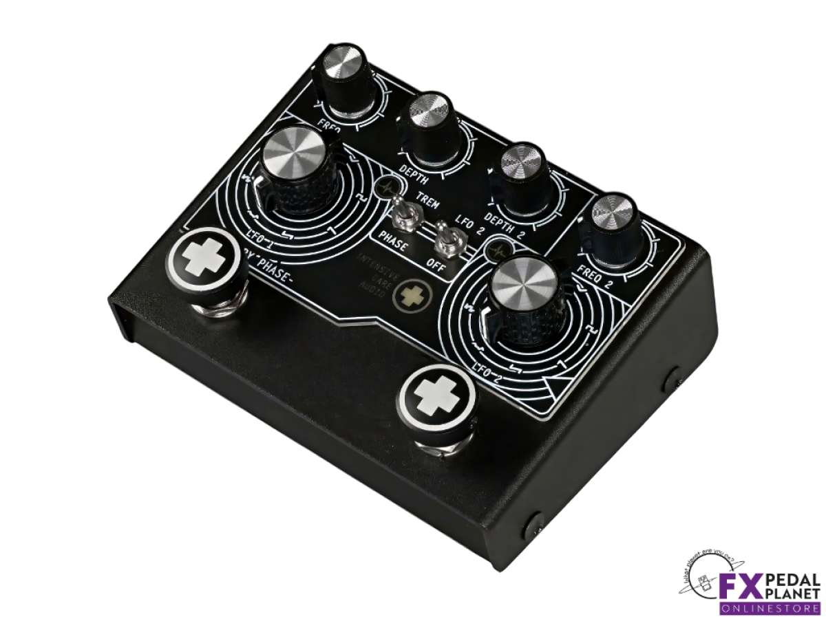 The Intensive Care Audio Recovery Phase is a dual modulation effects pedal designed for guitarists and bass players seeking deep, characterful phase shifting and tremolo within a single, flexible unit. Built in London, England, it combines bi-phase capability with independent phase and tremolo control, making it suitable for everything from subtle movement and vintage-inspired shimmer to complex, rhythmically animated textures. Whether used to add width to clean passages, movement to sustained chords or pulsing drive to riffs, it offers a broad modulation palette without overcomplicating the rig.