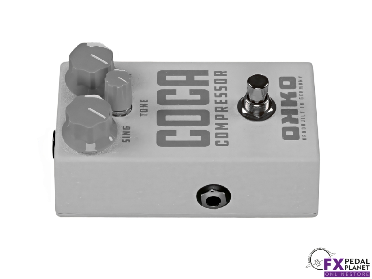 The OKKO FX Coca Compressor circuit is unique and unlike other industry leading compressors by utilising an optocoupler for smooth and natural compression. Instead of Attack/Release/Treshold and all the controls, the OKKO FX Coca Compressor has only one control for the compression called SING (you won’t miss any of the others). It works like an "upward" compressor, leaving the attack and strong notes unchanged while amplifying quieter notes and subtleties of your playing, therefore, increasing sustain.