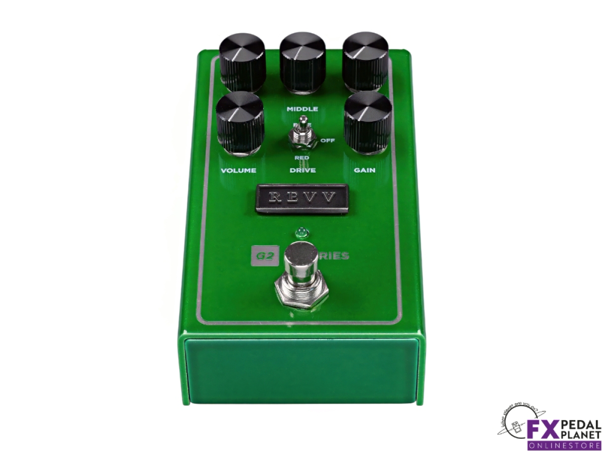 The Revv Amplification G2 overdrive pedal is an “amp in a box” stompbox that brings the character and feel of a classic tube amp’s crunch channel into a compact, pedalboard friendly format. It faithfully recreates the Green channel circuitry from Revv’s Generator amplifiers, giving guitarists a versatile tool that fits clean boosts, overdrive, or pre amp duties, whether placed in front of an amp, used in an effects loop, or driving a modelling/IR setup.