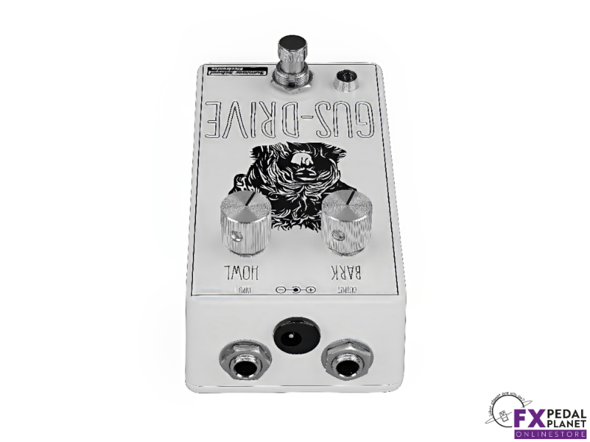 The Gus Drive by Summer School Electronics is a high gain hard clipping overdrive pedal designed to make your amp sing and howl. With its modern take on the DOD250/MXR Distortion+ circuitry, this distortion pedal stands out for its simplicity and versatility. The Summer School Electronics Gus Drive features two intuitive knobs: Bark (volume) and Howl (gain), allowing easy manipulation for a wide range of tones, from subtle sweetening to full on distortion.