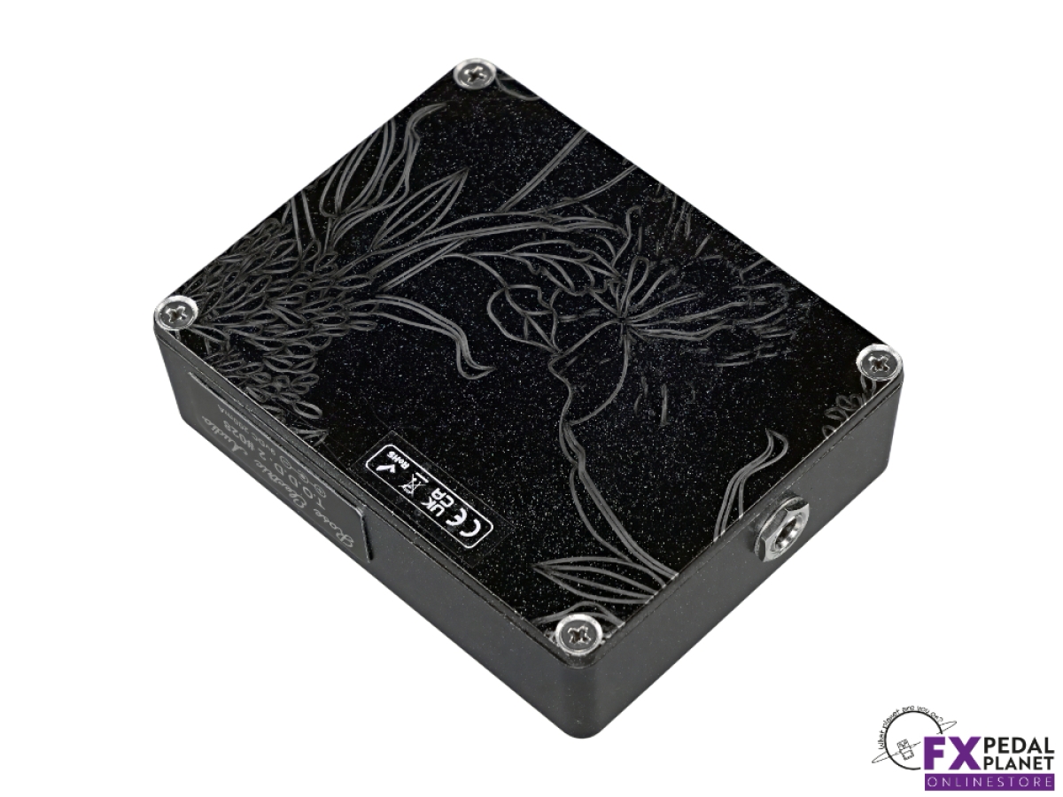The Rose Electric Audio T.O.D.D. 2 is housed in a robust all-metal enclosure designed for regular use on professional pedalboards. Its construction reflects Rose Electric Audio’s approach to durability and practicality, ensuring it can withstand transport, rehearsal and performance without issue. The finish is a distinctive black sparkle with white graphics and chrome controls, offering clear visibility and a striking presence without being distracting. A clear vale window on the top surface illuminates when T.O.D.D. 2 is engaged, allowing the warm glow of the valve to be seen under stage lighting, while also providing immediate visual confirmation of operation. The rear of the enclosure features detailed engraving, reinforcing the sense of purpose and attention to detail throughout the design.