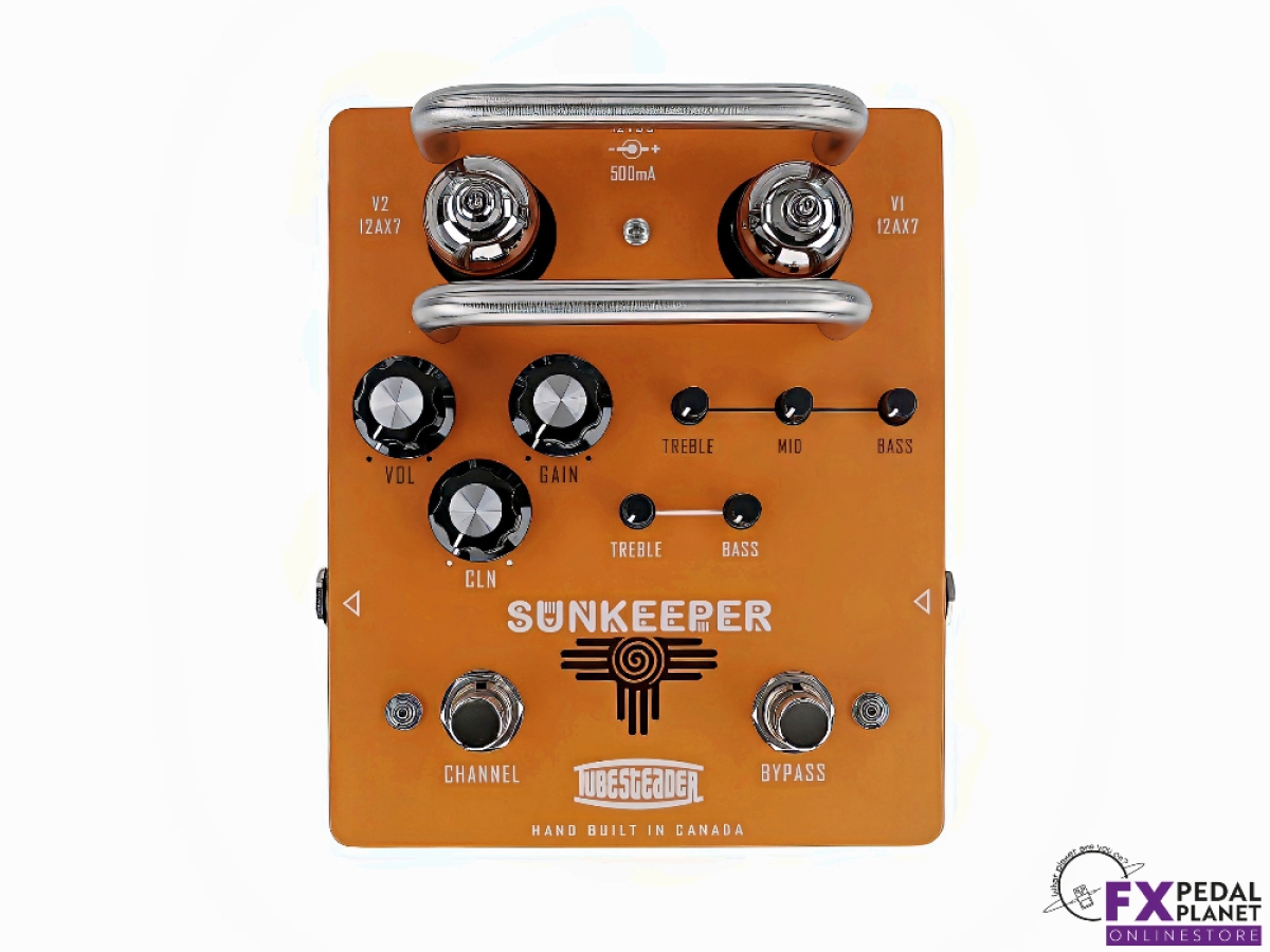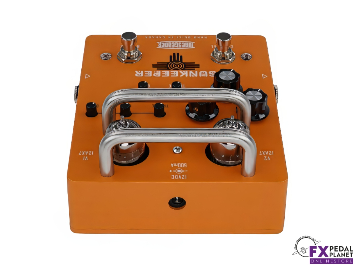 The Tubesteader Sunkeeper is a dual channel, all tube preamp and overdrive pedal that impeccably captures the classic "Orange" tone, bringing the iconic sound straight to your pedalboard. This pedal faithfully reproduces the massive, fuzzy gain and edge of breakup grit that define the legendary “Orange” amps, while also offering dynamic British cleans and punchy '70s tones.