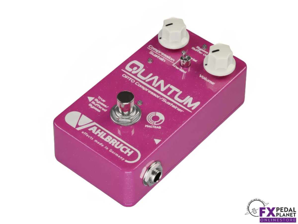 The Vahlbruch Quantum is a 100% analogue optical compressor and sustainer pedal, designed to deliver studio grade compression with straightforward operation. It combines a compressor and a switchable buffer in a single unit, making it a versatile addition to any guitarist's or bassist's pedalboard.