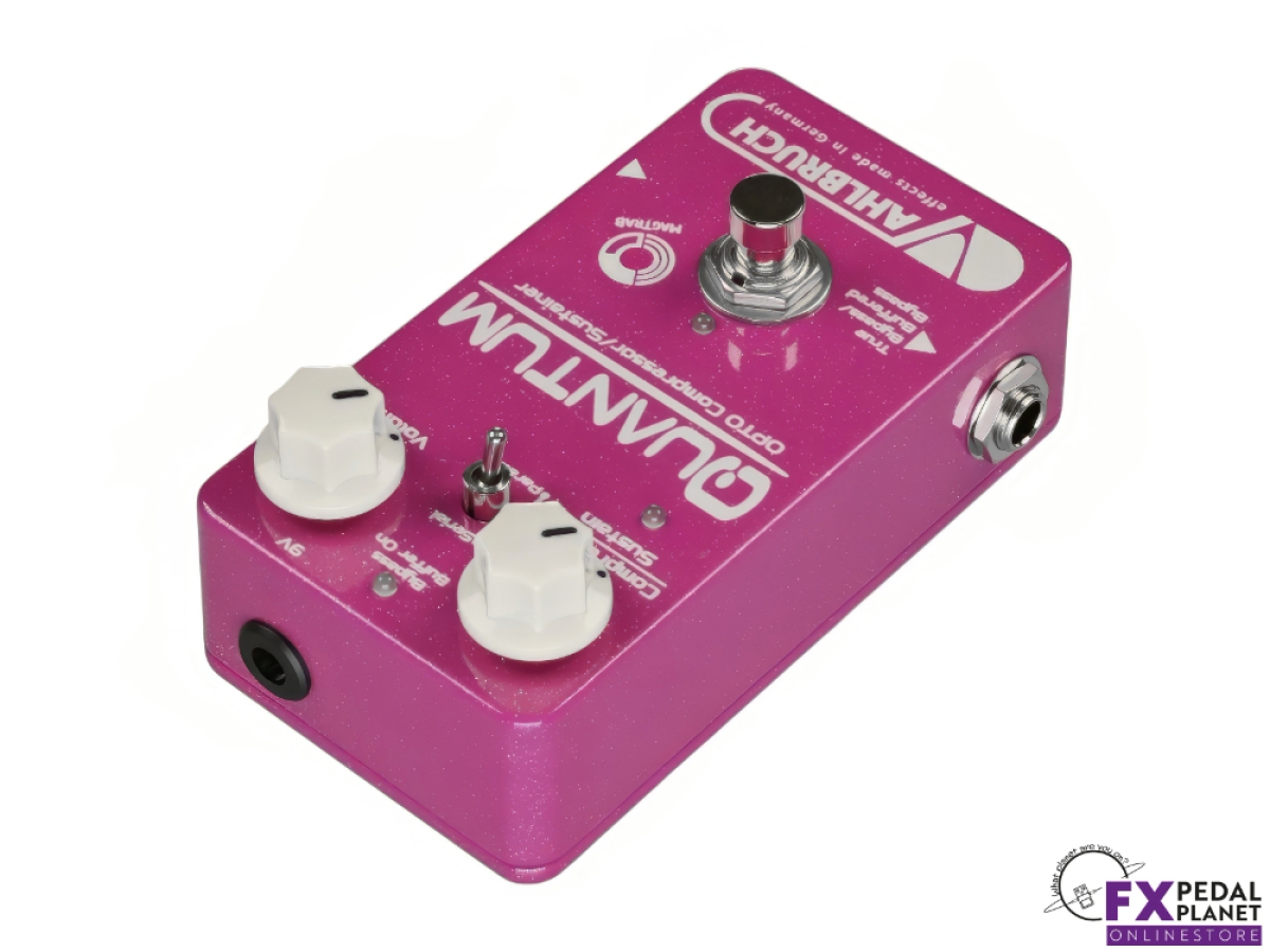 The Vahlbruch Quantum's controls are intuitive, featuring knobs for Compression/Sustain and Volume, along with a toggle switch to select between parallel and serial compression modes. This layout allows for quick adjustments and fine tuning to match different instruments and playing styles.